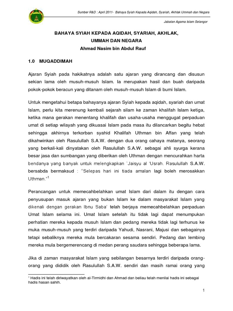 Akan tetapi ramainya umat Islam bukan bermaksud tetap bersatu dan sepakat bahkan. 1 BAHAYA SYIAH ASAL USUL CIRI-CIRI DAN BAHAYANYA KEPADA UMAT ISLAM DISEDIAKAN OLEH. Mudah menyandar sesuatu hadis kepada Nabi Muhammad saw tanpa memastikan kesabitan-kesabitan terlebih dahulu 2.